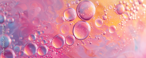 Abstract liquid withsmall beautiful acrylic bubbles and oil drops floating on the surface