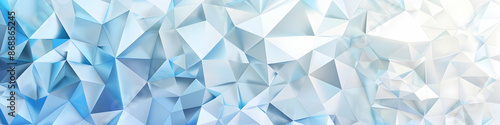 Abstract low poly background in shades of blue and white, featuring geometric triangles and polygons creating an icy and modern pattern.