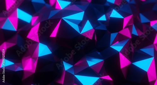 Abstract Low Poly Background with Vibrant Neon Pink and Blue Triangles