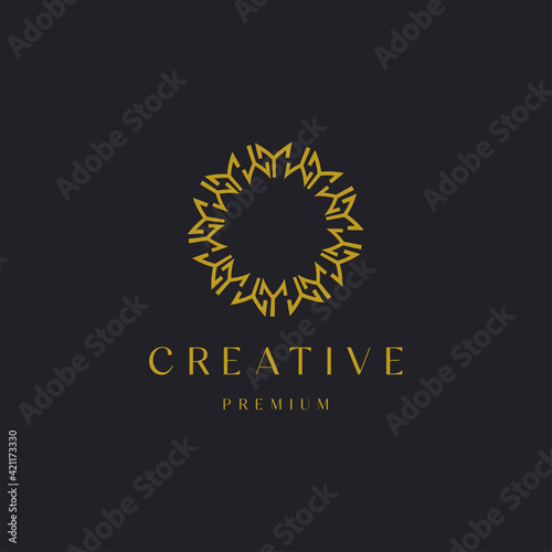 Abstract luxury circle ornament line style with letter M concept, logo icon design template vector illustration