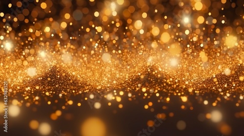 Abstract luxury gold background with gold particles. glitter vintage lights background. Christmas Golden light shine particles bokeh on dark background. Gold foil texture. Holiday.
