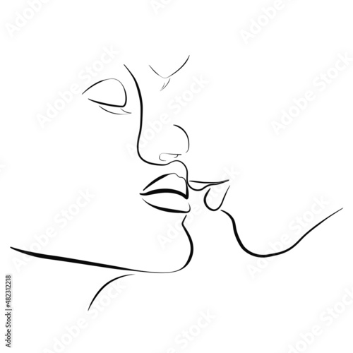 Abstract Man and Woman Kissing One Line Vector Drawing. Couple Minimalistic Style. Modern Continuous Line Art Drawing of Couple Lovers.