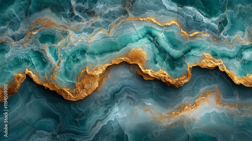 Abstract Marble Background. Dynamic Fluid Art with Marble Texture - Agate Stone Layers in Turquoise, Green and Gold Tones. Luxury Abstract Background for Design