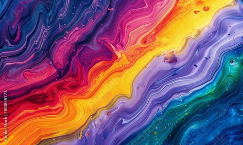 Abstract marbled acrylic paint ink painted waves painting texture colorful background banner - Bold colors, rainbow color swirls wave