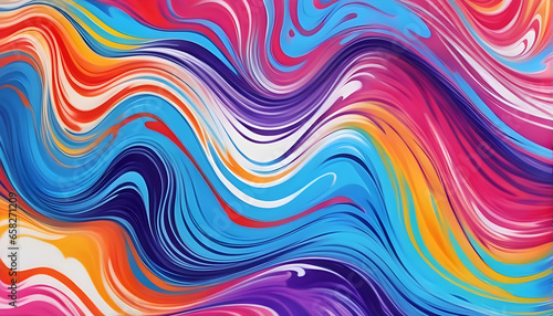Abstract marbled acrylic paint ink painted waves painting texture colorful background banner - Bold colors, rainbow color swirls wave white