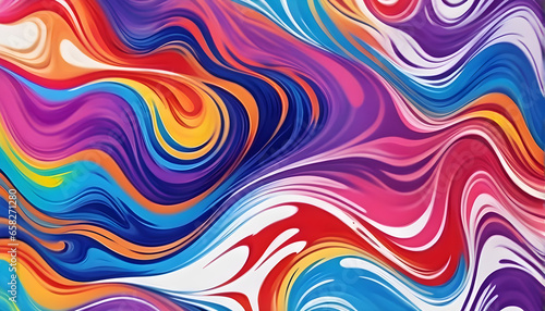 Abstract marbled acrylic paint ink painted waves painting texture colorful background banner - Bold colors, rainbow color swirls wave white