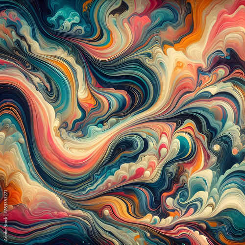 Abstract marbled acrylic paint ink painted waves painting texture colorful background banner, Bold colors, wave, wallpaper, pattern, illustration, Ai generated