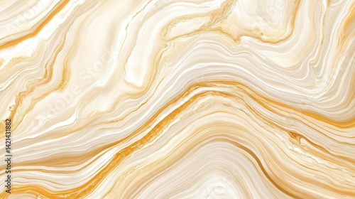 Abstract marbled design featuring flowing patterns in cream and gold tones.
