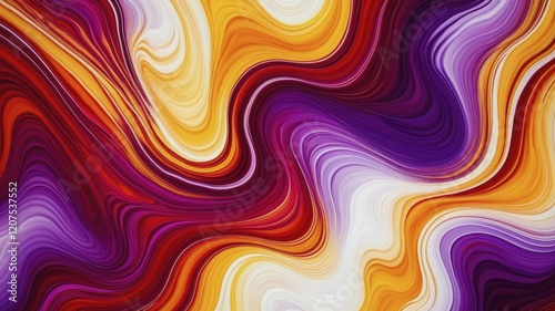 Abstract marbled digital artwork with dynamic swirls of red, purple, yellow, and white, creating energy.