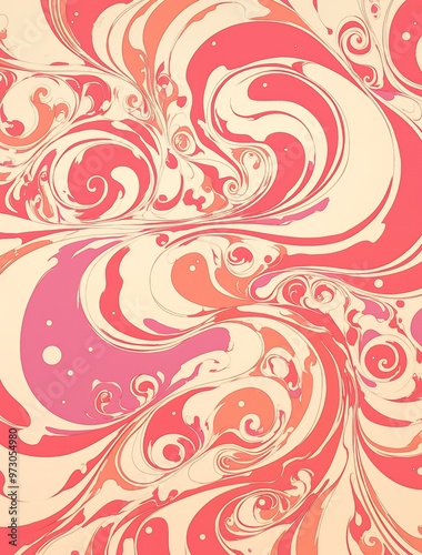 Abstract marbled pattern with pink, coral, and cream swirls.