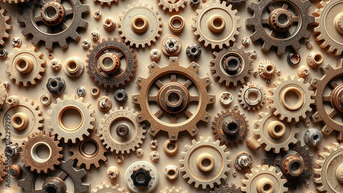 Abstract Mechanical Seamless Pattern - Gears Bolts Beige Brown