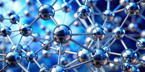 Abstract Metallic Molecular Structure with Interconnected Spheres and Rods in Cool Blue Space - Futuristic Science and Innovation Concept