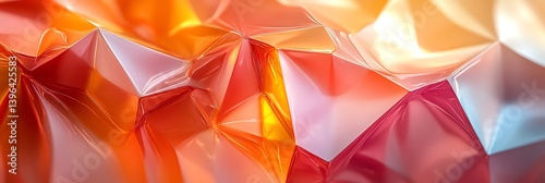 Abstract Metallic Polygon Surface with Orange and Red Gradient Lighting