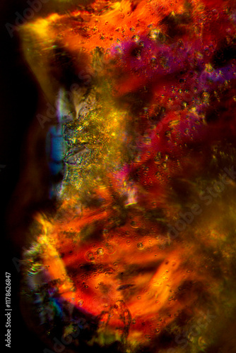 Abstract micrograph of a sand grain from Anguilla, with polarization.