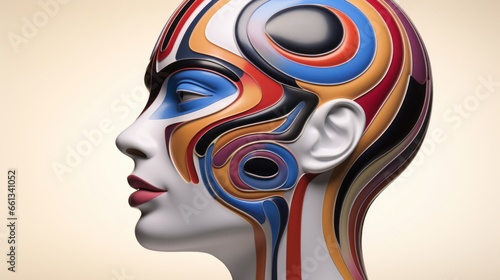 Abstract Mind: Simplistic representation of a human head with abstract, soft-shape elements inside, indicating various thoughts and emotions without detailed facial features.