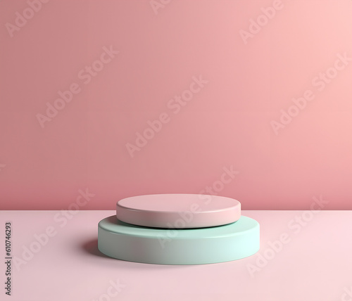 Abstract minimal concept. Pastel pink aqua turquoise round podium on background. Mock up template for product presentation. copy text space