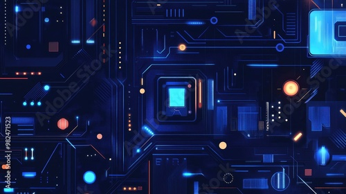 Abstract Minimal Illustration Of Electronic Circuit Board In Blue Ideal For Ai Generative Technology