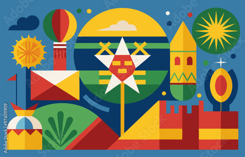 Abstract minimalist art celebrating ethiopian new year with geometric shapes and cultural symbols