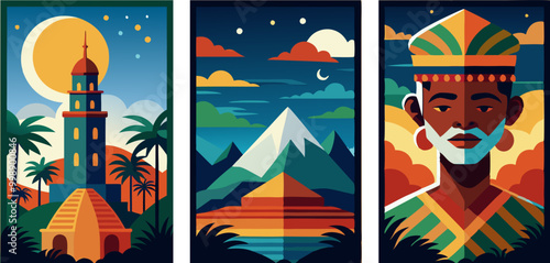 Abstract minimalist ethiopian posters collection featuring cultural and natural landscapes