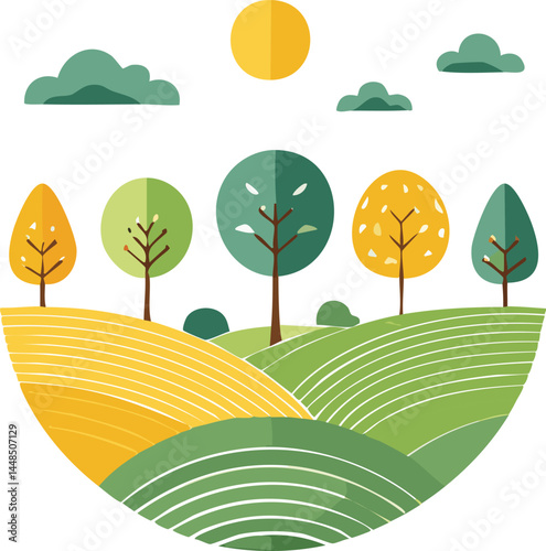 Abstract Minimalist Tree Art – Serene Field Landscapes Vectors