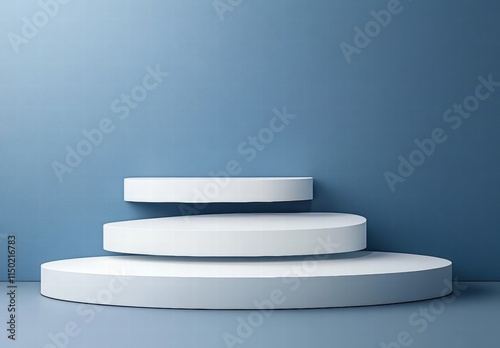 Abstract Minimalist White Cylindrical Display Platform on Blue Background