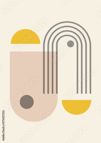 Abstract minimalistic poster with arch in boho style. Line art. Contemporary geometric composition.