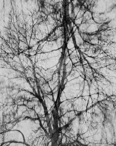 abstract mirrored branches for natural art in vertical view black and white.