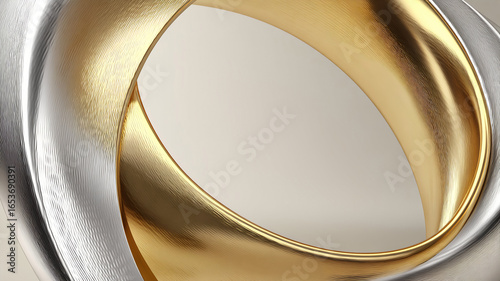 Abstract Modern Art Sculptural Loop in Gold and Silver - Background with Copy Space