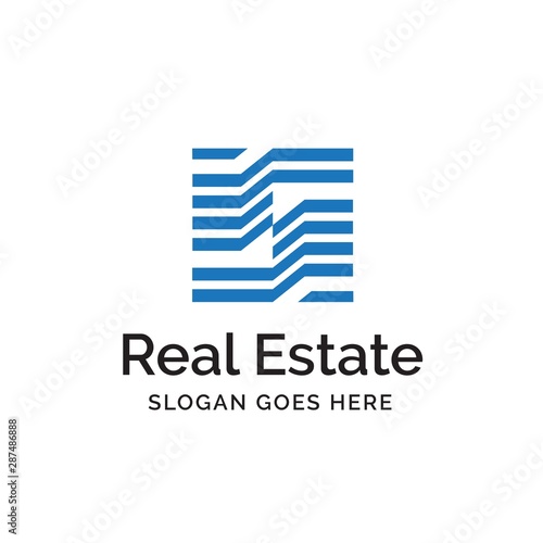Abstract modern blue line art buildings and architecture real estate logo design