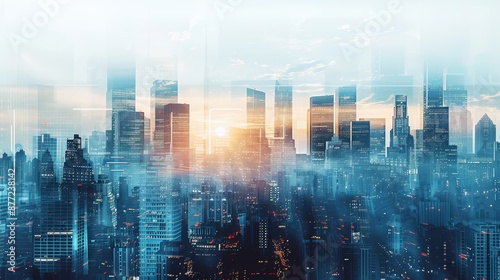 Abstract Modern Business Background with Cityscape Double Exposure