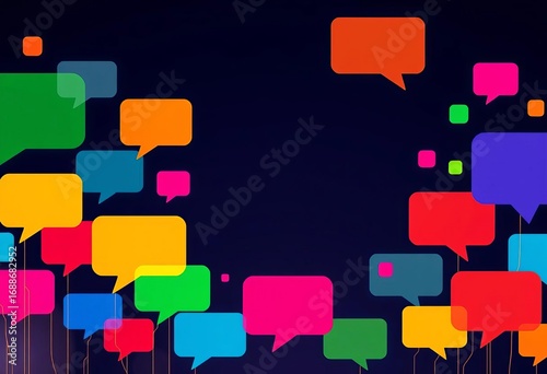 Abstract modern communication background with colorful speech bubbles, vibrant, online