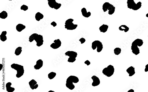 Abstract modern cow fur seamless pattern. Animals trendy background. Black and white decorative vector illustration for print, card, postcard, fabric, textile. Modern ornament of stylized skin