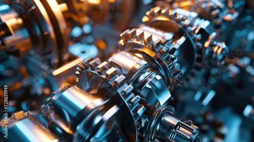 Abstract modern engine wallpaper, gears and cogs close-up technology background