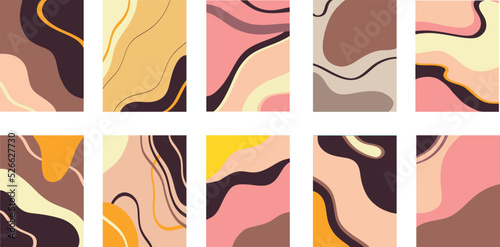 Abstract modern templates with nude neutral tones. Minimalistic trend abstract design with various natural shapes in pastel neutral colors.