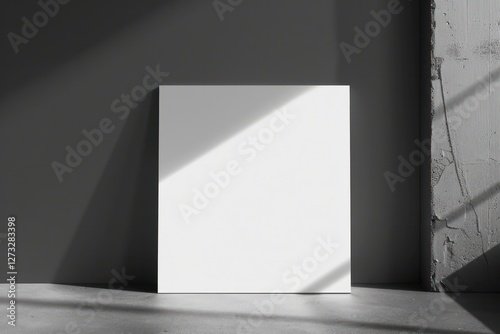 Abstract modern white panel place interior background for product presentation with a textured white panel on a dark gray wall with beautiful light and shadow highlights sunlight from window