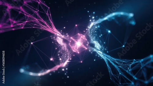 Abstract Molecular Connection with Lines and Glowing Spheres, Futuristic