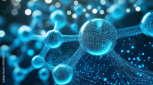 Abstract Molecular Structure Featuring Blue Particles and Wireframe Mesh: A Vector Illustration Representing the Scientific Foundations of Nanotechnology.