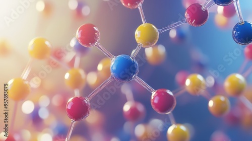 Abstract Molecular Structure with Colorful Spheres and Blurred Background