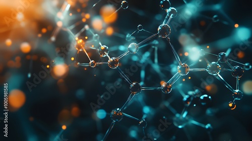 Abstract Molecular Structure with Glowing Orange and Blue Hues