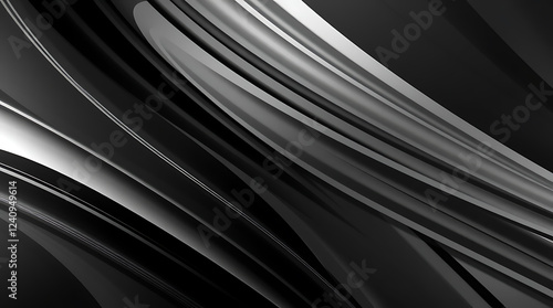 Abstract Monochrome Background: Sleek Black and White Curves. Modern, elegant design with dynamic lines and flowing shapes. Perfect for wallpapers, presentations, or website backgrounds.