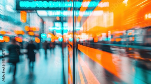 Abstract Motion Blur of City Street with Neon Reflections
