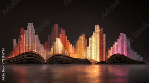Abstract mountain range composed of stacked data blocks and colorful 3d visualization concept.