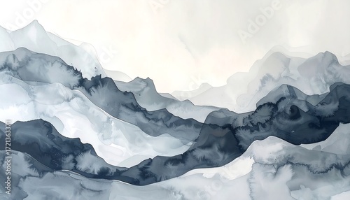 Abstract mountain range, grayscale, ink wash