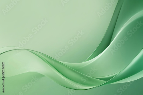 Abstract mute green liquid metal background. Holographic techno smooth gradient waves industrial backdrop. Shining bent surface with ripples, reflections. Swirl green fluid melting wavy flowing motion