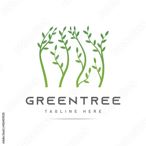 Abstract national park forest nature logo with floral green tree branches with leaves on background.Design template ecology icon, sign nature, symbol garden spring.Vector illustration