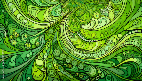 Abstract nature background with fractal effect in green colors, avocado green, iguana green, light frog green and caribbean green