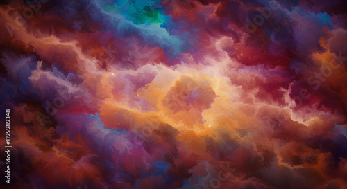Abstract Nebula Painting, Cosmic Cloudscape, Vibrant Color Swirls, Digital Art