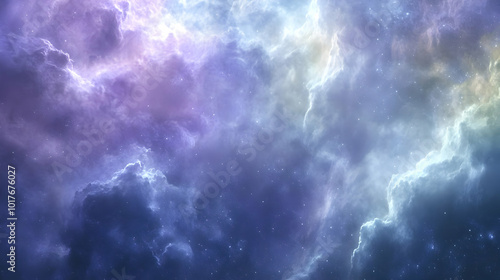 Abstract Nebula with Blue, Purple, and White Clouds and Stars Background