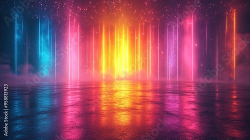 abstract neon backgroun with colorful spectrum modern wallpaper with glowing vertical lines
