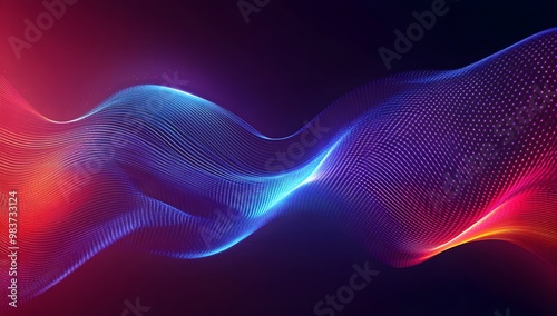 Abstract neon background with blue and red glowing lines on a dark purple backdrop